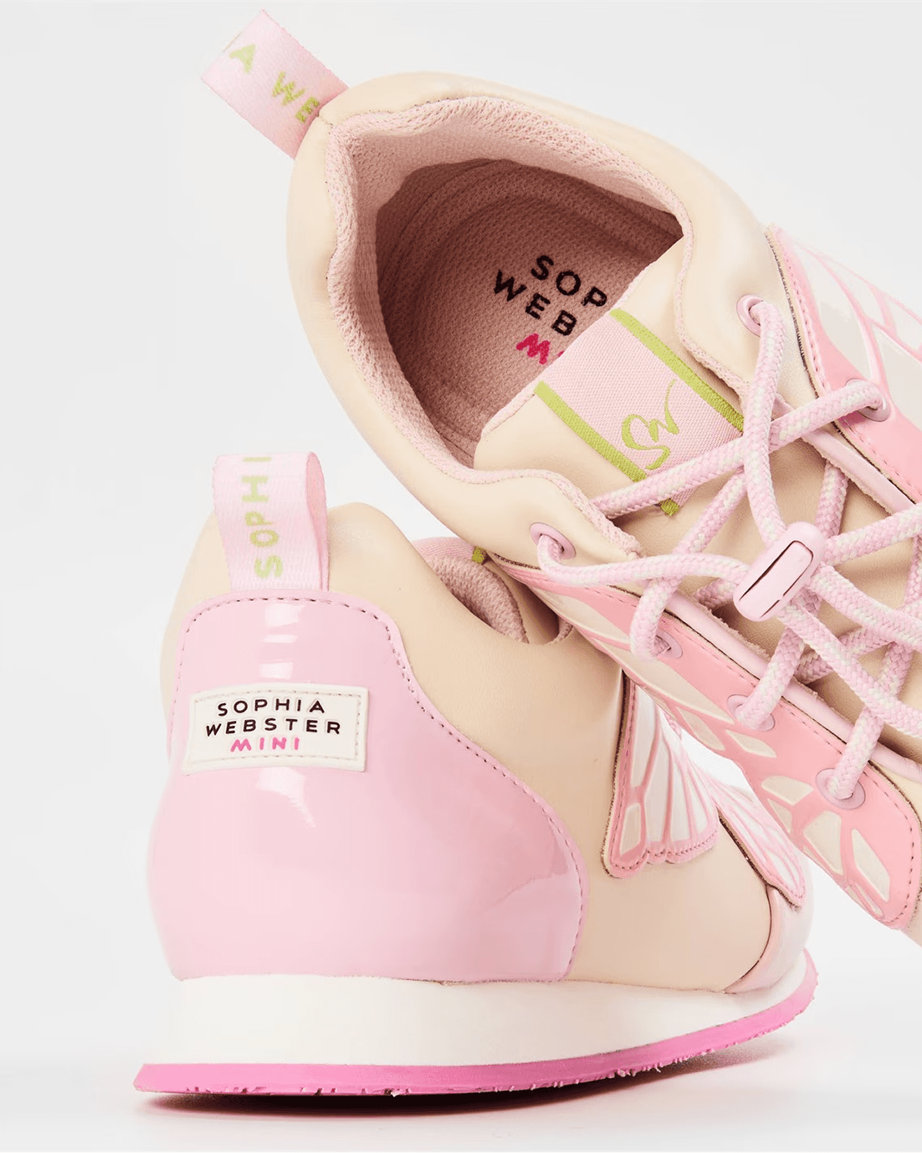British footwear and accessories designer Sophia Webster has built a global following for her bold, whimsical approach to luxury. Known for statement heels adorned with butterfly motifs, vibrant colour palettes, and unapologetically feminine details, the brand occupies a space where high fashion meets joyful self-expression. Operating within a competitive landscape that includes established names like Jimmy Choo, Gina, and Manolo Blahnik, Sophia Webster needed an identity that could stand confidently alongside luxury heavyweights while maintaining her distinctive, playful voice. We developed a flexible brand identity system anchored by a refined logotype with multiple expressions. The system includes a signature "SW" monogram and a hand-drawn script logo for moments requiring a more personal, artistic touch. We also created Sophia Webster Mini, a children's footwear sub-brand that translates the main line's playful spirit into a more vibrant, youthful expression. The identity balances sophistication with charm, ensuring the brand feels premium without losing the spirited energy that makes Sophia Webster so instantly recognisable.