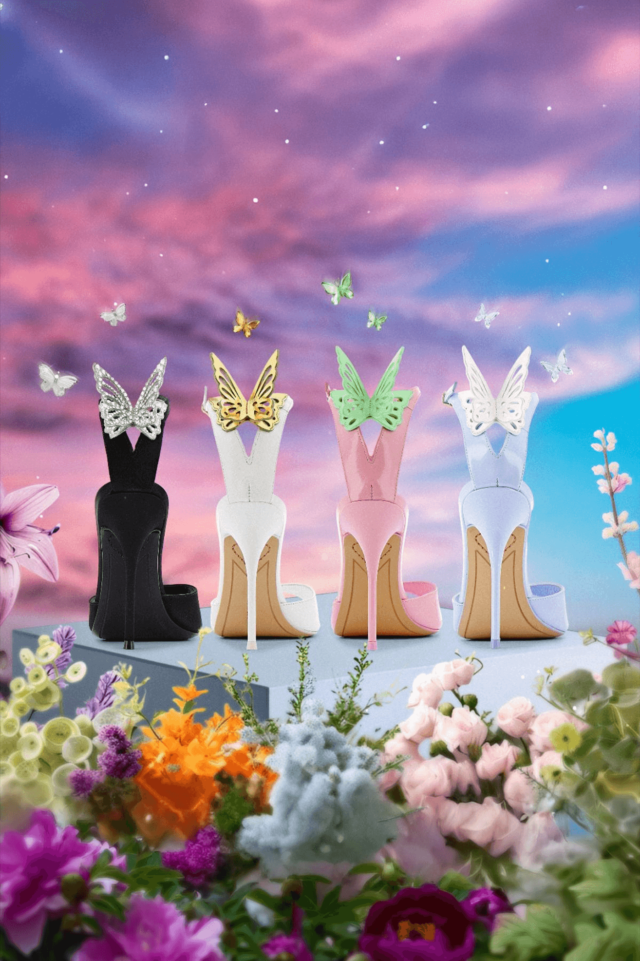 British footwear and accessories designer Sophia Webster has built a global following for her bold, whimsical approach to luxury. Known for statement heels adorned with butterfly motifs, vibrant colour palettes, and unapologetically feminine details, the brand occupies a space where high fashion meets joyful self-expression. Operating within a competitive landscape that includes established names like Jimmy Choo, Gina, and Manolo Blahnik, Sophia Webster needed an identity that could stand confidently alongside luxury heavyweights while maintaining her distinctive, playful voice.